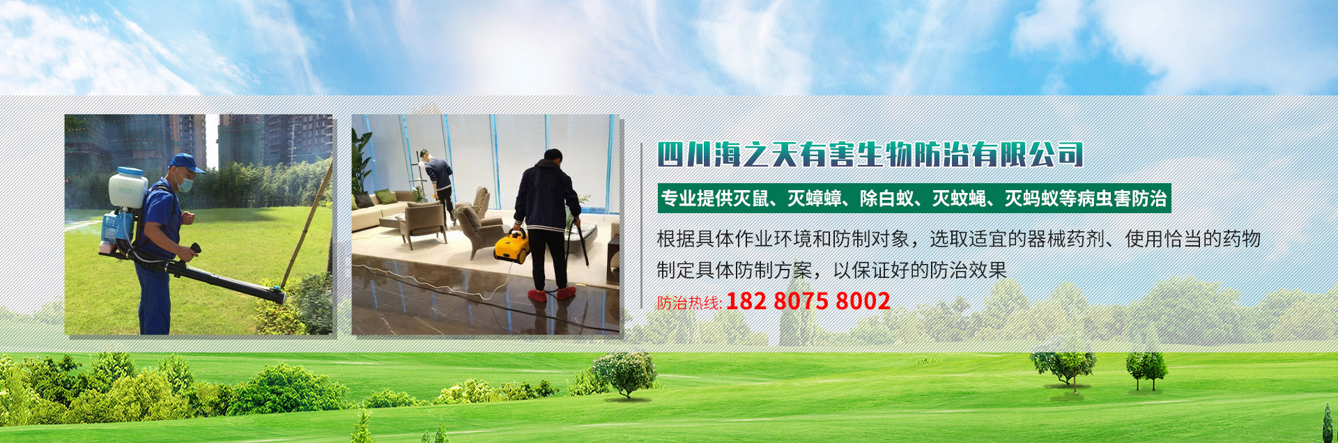 四川海之天有害生物防治有限公司坐落于美麗的科技城綿陽,公司老板從事本行業十余年,有著豐富的經驗和專業的團隊。本公司使用的藥物,均系經國家藥檢部門和衛生防疫部門批準的安全、低毒的城市衛生用藥,并根據具體作業環境和防制對象,選取適宜的器械藥劑、使用專業的藥物,制定具體防制方案,以確保好的防治效果。內、外環境所用藥物:安全、低毒、無味無刺激、環保、高效果、無污染,對住宿的賓客,門診、住院的病人,學習、辦公的人員,都沒有不良刺激,特別適用于追求高質量環境的賓館、飯店、醫院、機關、學校等場所! 經營項目:全市范圍內即周邊城市的大型工廠、工業園、社區,山莊,度假村,旅游景點,賓館、飯店,公寓、寫字樓、醫院、政府機關、餐飲業、食品加工業、倉儲等各企事業單位上門消殺服務,綜合治理,可以選擇一次用藥或包年服務,以合理的費用提供更好的服務,讓我們一同攜手,共同創造美好、健康、潔靜的生活環境! 我們的理念:本公司采用生物滅蟲、綜合用藥、除蟲完善、藥效持久,安全、環保、對人畜安全無害,解決您的后顧之憂。本公司提供專業技術人員免費上門檢查白蟻、害蟲服務!公司在國家規定節假日照樣安排有技術人員正常上班,歡迎拔打熱線咨詢18781110022
